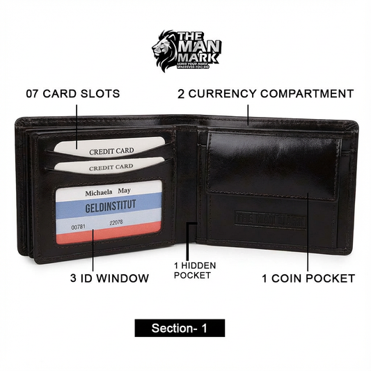 Executive Mark Premium Leather Wallet - 7 Card Slots, 2 Currency Pockets, RFID Protection - Perfect Gift for Birthday, Valentine's Day, Father's Day, Brother's Day, Anniversary, Rakhi, Diwali etc