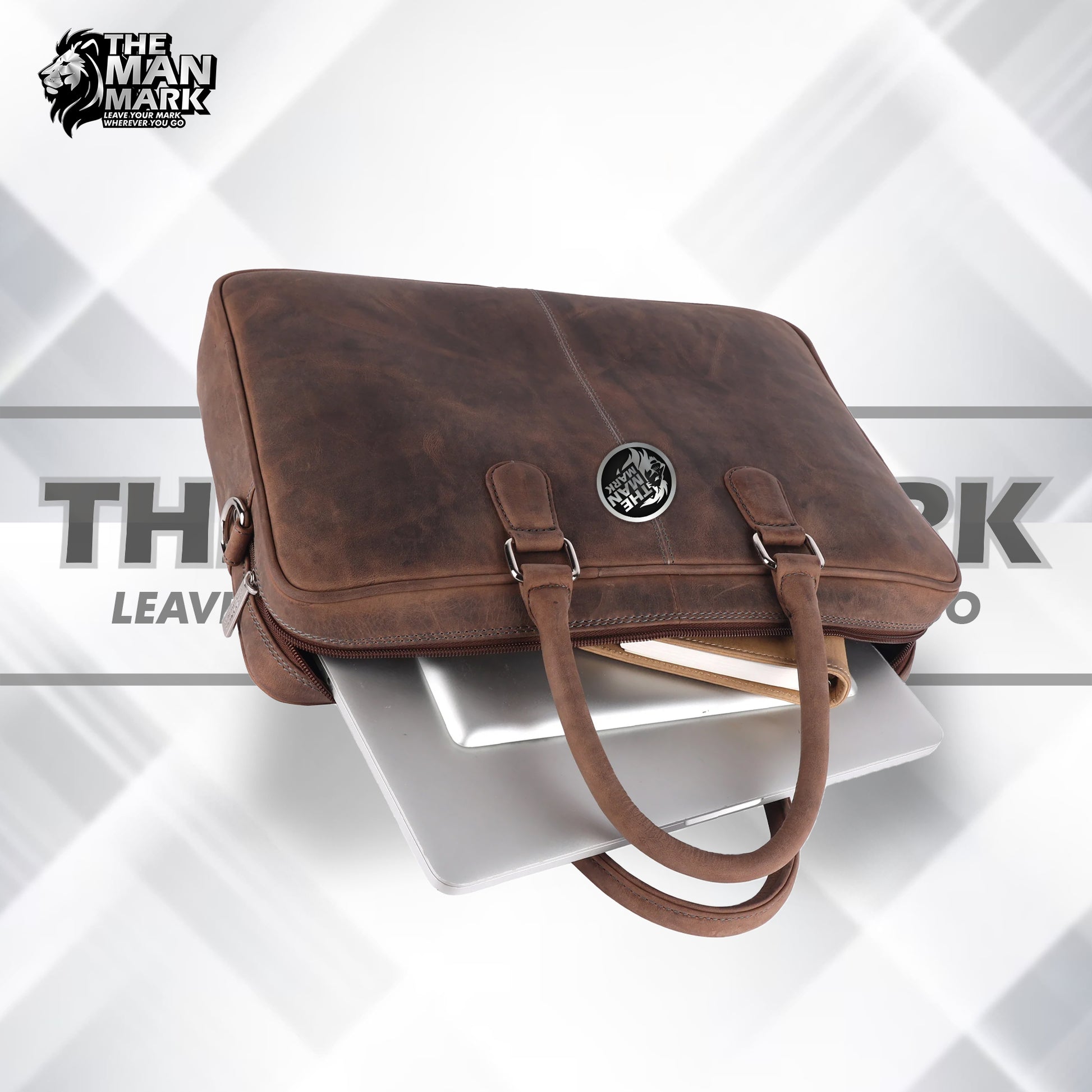 Professional Design and Quality:Featuring The Man Mark branded zippers and sliders, stitched with high-quality nylon threads, this leather bag for men is designed by professional designers to meet the highest standards of quality and style. This laptop bag is perfect for those seeking men laptop bags for office use.