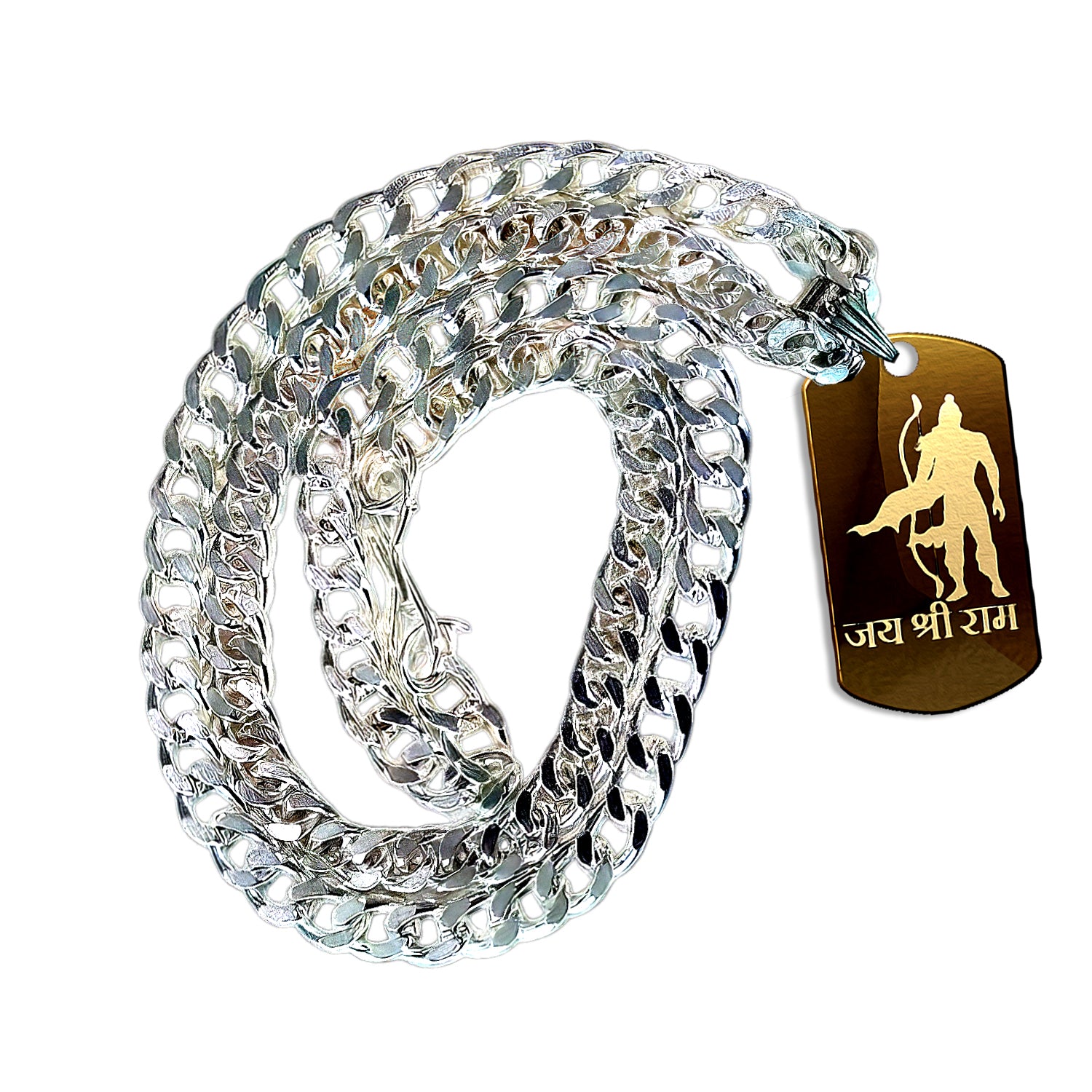 Channel divine strength with this bold Jai Shree Ram pendant, crafted to honor Lord Ram’s valor and virtue. Featuring an engraved silhouette of Ram with bow and arrow, paired with the sacred inscription "जय श्री राम," this pendant blends spiritual symbolism with streetwear edge. Suspended from a thick, silver-toned chain, it’s designed for men who wear their beliefs with pride and style.